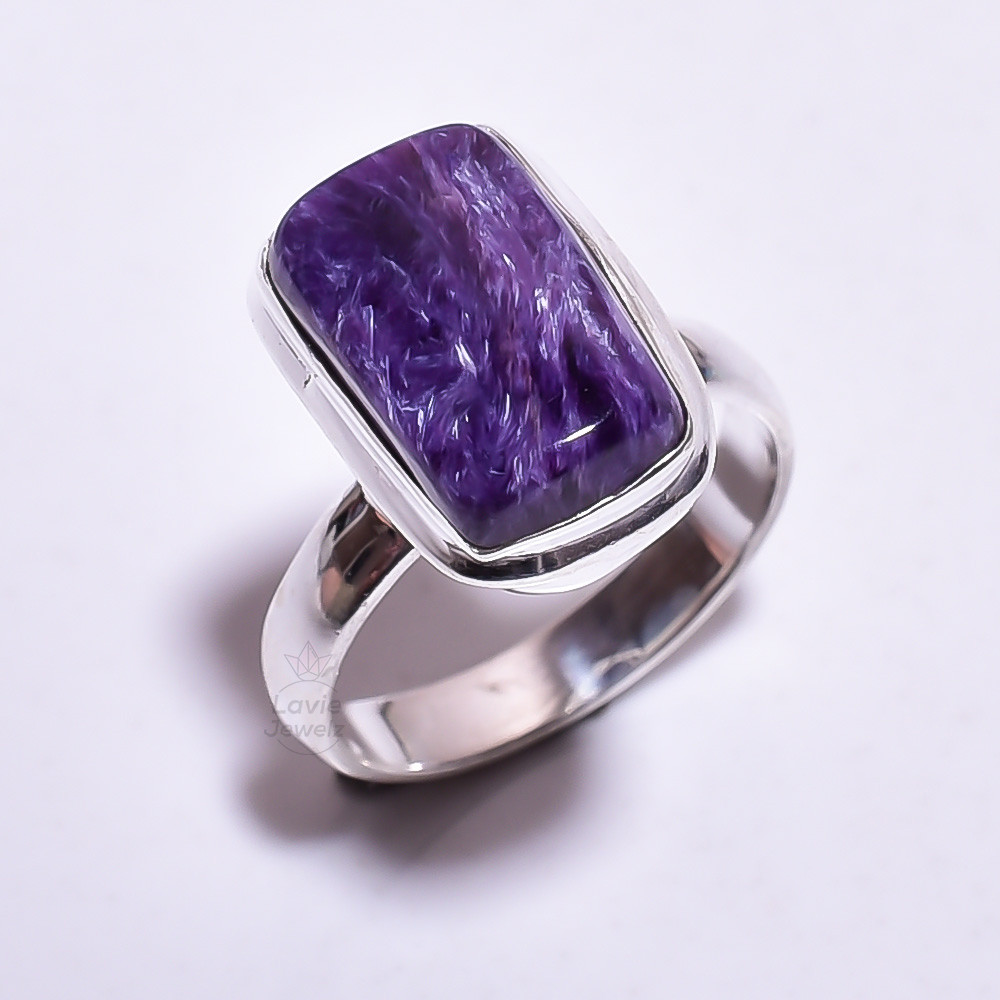 Charoite Gemstone 925 Sterling Silver Ring Size 7