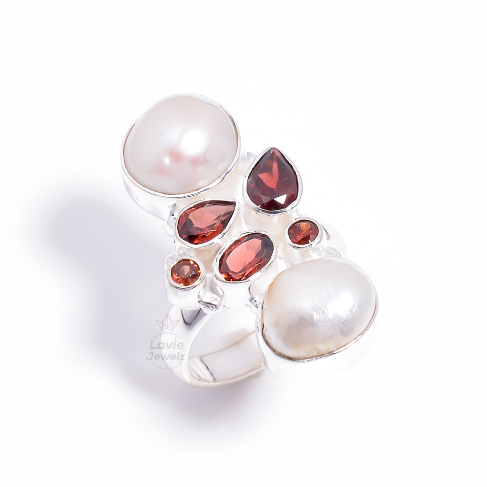 Pearl Garnet Gemstone 925 Sterling Silver Ring Size US 8